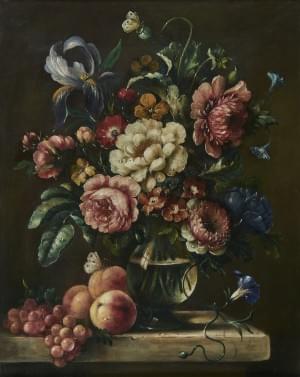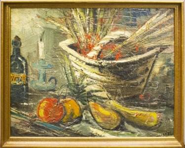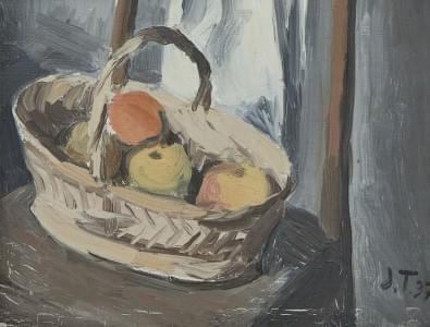 Nature morte au panier de fruits, huile sur toile, monogrammée e...