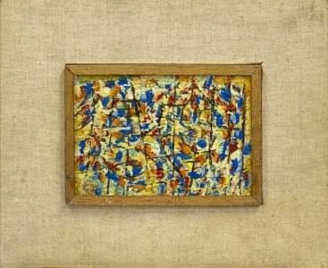 Composition abstraite, huile sur pavatex, signée, 12,5x18 cm