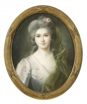 Portrait de femme, pastel sur papier, 60x49 cm. Cadre ancien de...