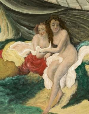 Deux femmes dans l'intimité d'un boudoir, huile sur panneau, 29x...