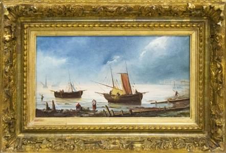 Barques échouées à marée basse, huile sur toile, signature non i...