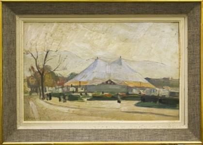 Le cirque Knie à Plainpalais, huile sur carton, 35x55 cm