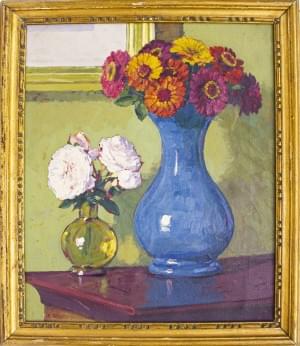 Deux vases fleuris, huile sur toile, signée, 45,5x38 cm