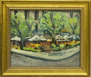 Vue d'un marché, huile sur toile, signée, 22x27 cm