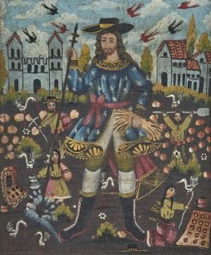 Saint Isidore, huile sur toile marouflée sur carton, 35x30 cm