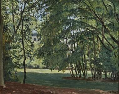 Vue d'un parc, huile sur toile, signée et datée 45, 33x40 cm
