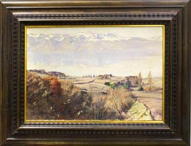 Vue du Léman depuis Epesses, huile sur toile, signée et datée 19...