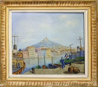 Marin dans le port de Marseille, huile sur toile, signée Hessler...