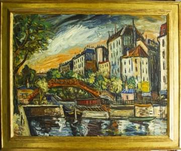 Canal Saint Martin à Paris, huile sur panneau, signée, contre-si...