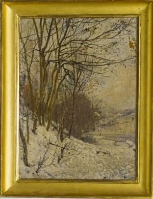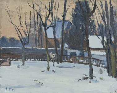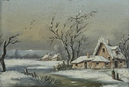 Paysage enneigé, huile sur carton, signature non identifiée, 23x...