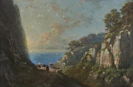 Falaises au bord de la mer, huile sur toile, 46x64 cm