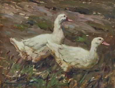 Canards blancs, huile sur carton, 26x34 cm