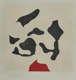 Composition en noir et rouge, gravure, signée à la mine de plomb...