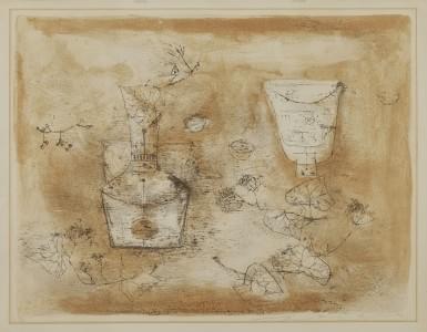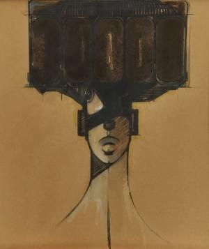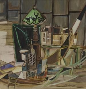 Composition à la lampe, aquarelle et gouache sur papier, signée,...