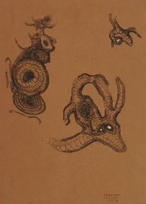 Bonneval et le cheval noir, plume et gouache sur papier, 40x50 c...