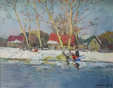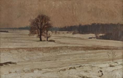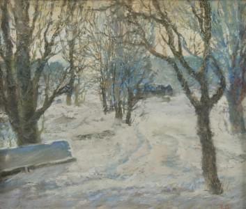Paysage sous la neige, Russie, pastel sur papier, signée Dekan,...