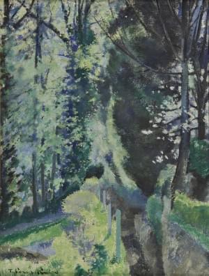Fontaine sous les arbres, gouache sur papier, 20x15 cm