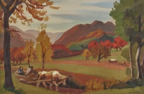 Chevaux de labour, aquarelle sur papier, signée, 35x52 cm