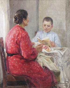 Akupuntura, huile sur panneau, signée et datée au dos 1991, 44x7...