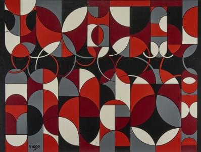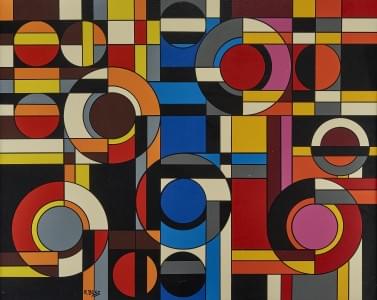 Abstraction géométrique, huile sur pavatex, 75x100 cm