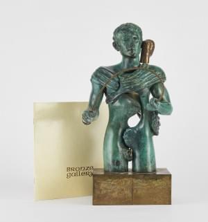Hermès, bronze à patine verte et dorée, signé et numéroté 28/40,...