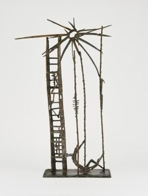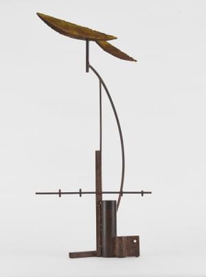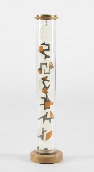 Variacions, papier peint, verre, bois et métal, signé, H 78 cm