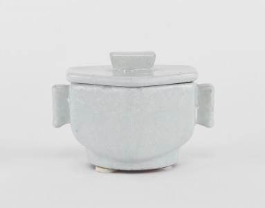 Petite boîte, céramique émaillée céladon clair, signée Boas et n...