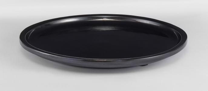Grand plat rond, céramique lustrée noire, signé Bonifas France,...