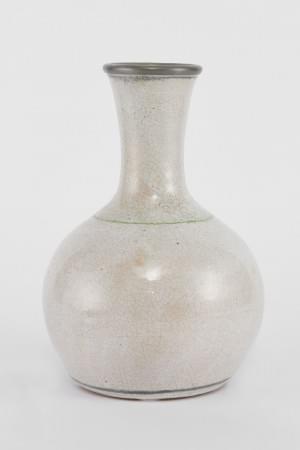 Vase balustre, céramique émaillée ivoire craquelée, col en étain...