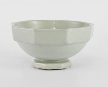 Coupe octogonale et bol, céramique émaillée céladon clair et ivo...