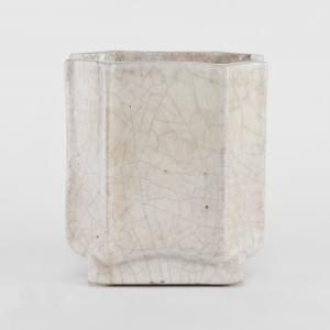 Vase octogonal, céramique émaillée ivoire craquelée, signé Bonif...