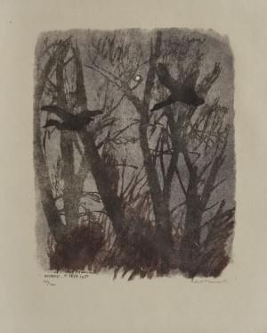 Oiseaux en vol, Divonne, 6 fevr. 1971, bois gravé, signé et numé...