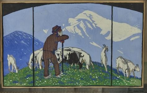Berger et ses chèvres à l'alpage, projet, gouache sur papier non...