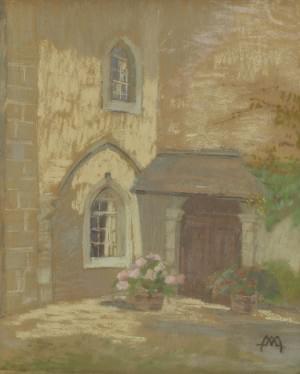 Vue d'une porte, Morges, pastel sur papier, monogrammé, 30x24 cm