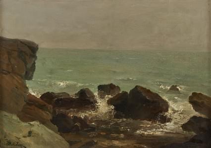 Bord de mer aux rochers, huile sur toile, signée, 26x36 cm