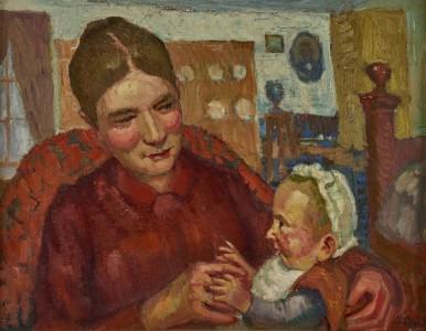 Maternité, huile sur toile, signée, 44x59 cm