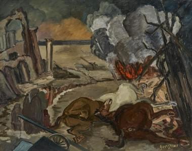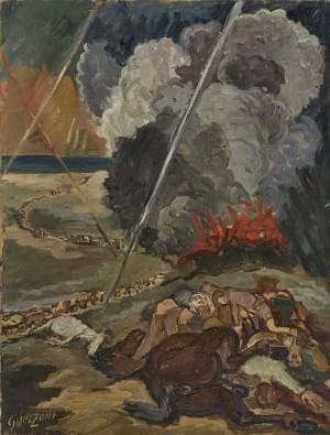 Distruzione, huile sur toile, signée, 65x82 cm