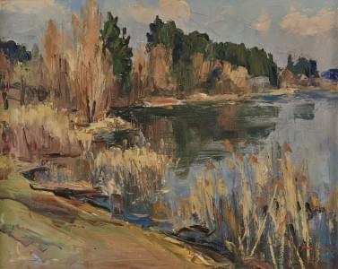 Roseaux au bord du lac, huile sur toile, signée, 50x60 cm