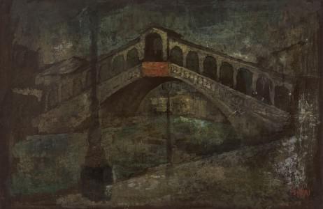 Ponte di Rialto, huile sur pavatex, signée, 84x60 cm