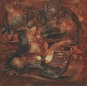 Charon, 1999, gouache huilée sur toile, 48x35,5 cm. Le produit d...