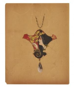 Projet de pendentif au profil féminin, circa 1900, gouache et en...