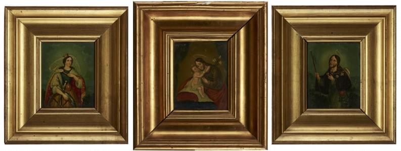 Trois scènes religieuses, huiles marouflées sur panneaux, 18x15...