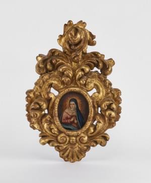 Sainte Vierge, huile sur cuivre, dans un cadre baroque en bois s...