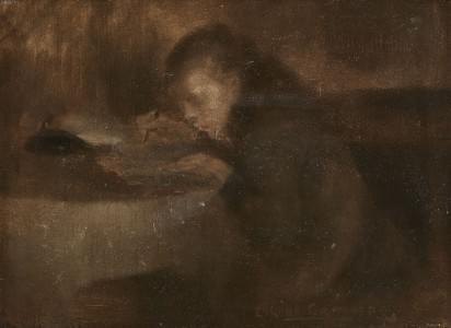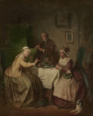 Scène d'intérieur, huile sur toile, 70x57 cm