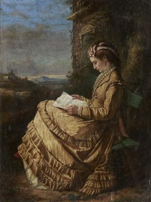 Jeune femme à la lecture, huile sur toile, signée et datée 1871,...