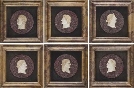 451. Six médaillons ornés de profils d'empereurs romains, dans le sty...
