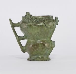 Pot à décor d'Eve et le serpent, bronze à patine verte d’après l...