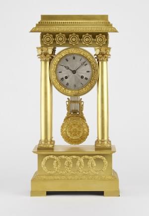 Bronze doré, cadran émaillé blanc, H 42 cm