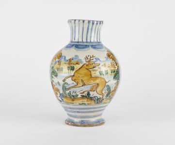 Faïence émaillée polychrome à décor de cerf, H 25 cm