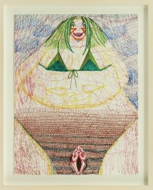Sans titre, deux crayons de couleur sur papier dans le même enca...